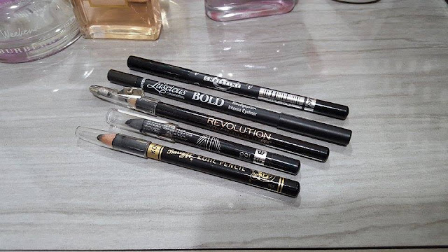 | Barry M kohl Pencil, Rimmel Scandal Eyes Waterproof Kohl Kajal, Makeup Revolution Eyeliner, Luscious Bold Smudgeproof Intense Eye Liner, Christine Kajal/Eyeliner Pencil |