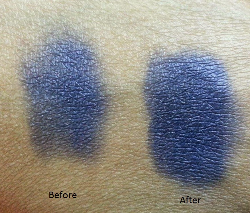 The Milani eye shadow primer in Nude is a cream formulated, slightly transparent primer which not only helps eye shadows stay on longer but also intensifies pigmentation, as you can see in the picture above. Apply it using your fingers all over the eye and up towards the brow bone. For those who want to use it everyday will need a new one soon as the 9 ml tube runs out quickly. Avoid it if you have oily lids.