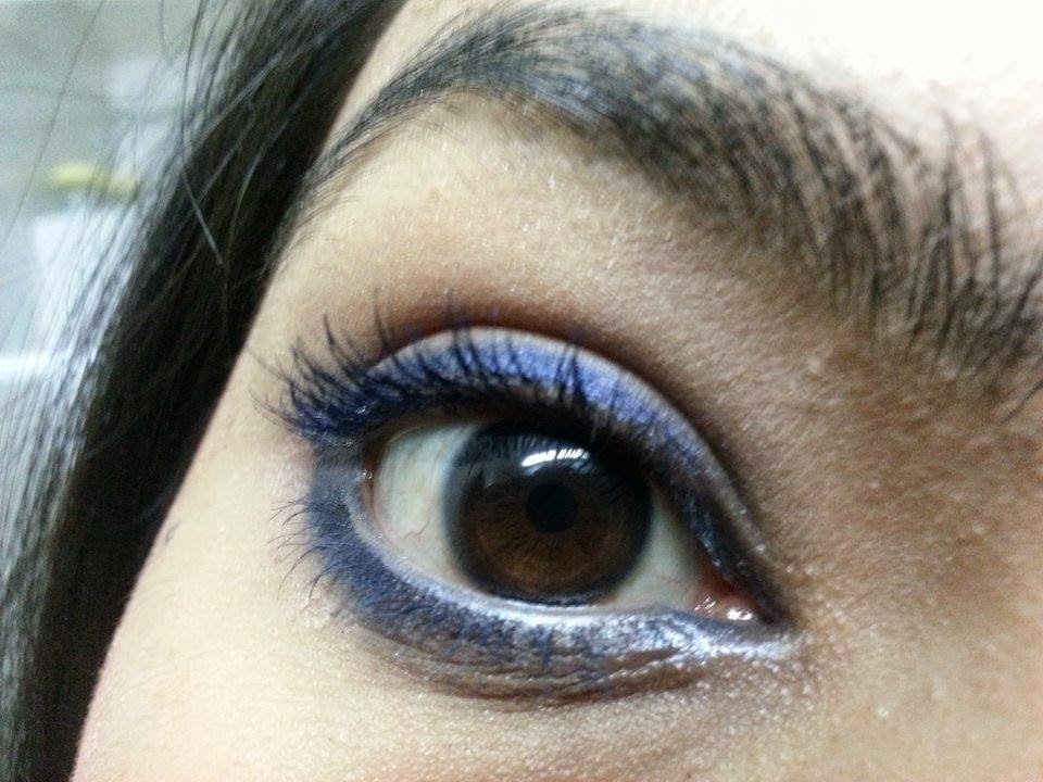 Result: It looks like a professionally designed pencil with a smudger at the end and exact color cap. Feels slightly dry and rough when applying and has a metallic finish. The color is a glamorous electric blue, which I fell for instantly. I wear it like a regular eye pencil on the upper and lower lash line.